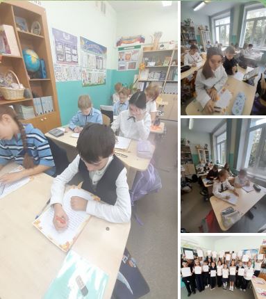 В 3э и 4э классах учащиеся обсудили вопрос: зачем нужно быть грамотным человеком? Затем на красиво оформленных листочках старательно написали диктант, заранее вспомнили известные детям орфограммы. Ребята старались не делать ошибок и получили от своей работы заряд положительных эмоций.